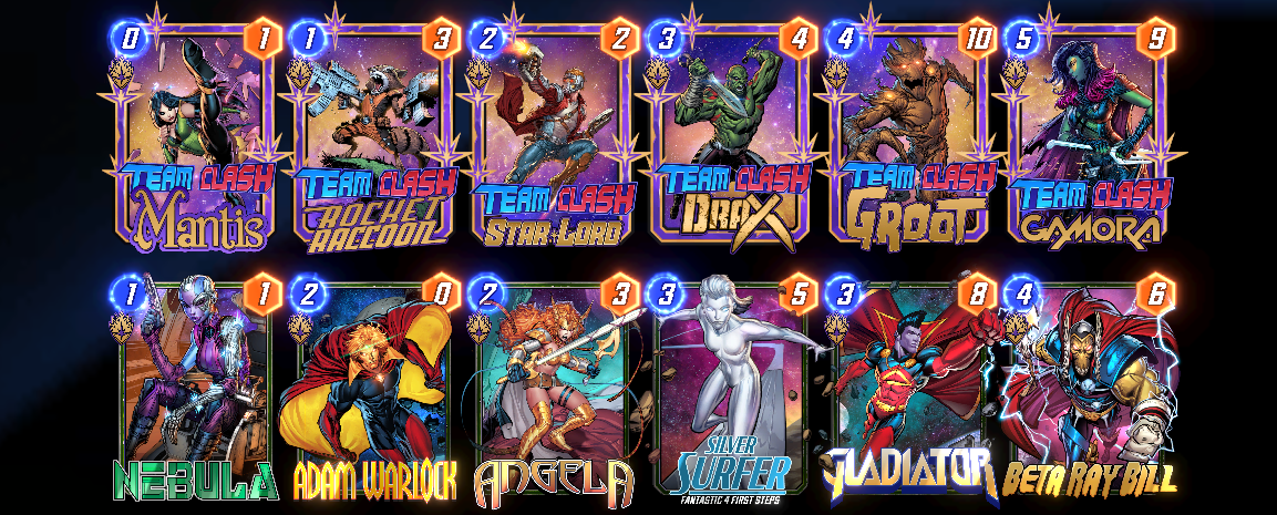 Team Clash Gamora: On Reveal: If your opponent played a card here this turn, destroy their lowest-Cost card here.![]()