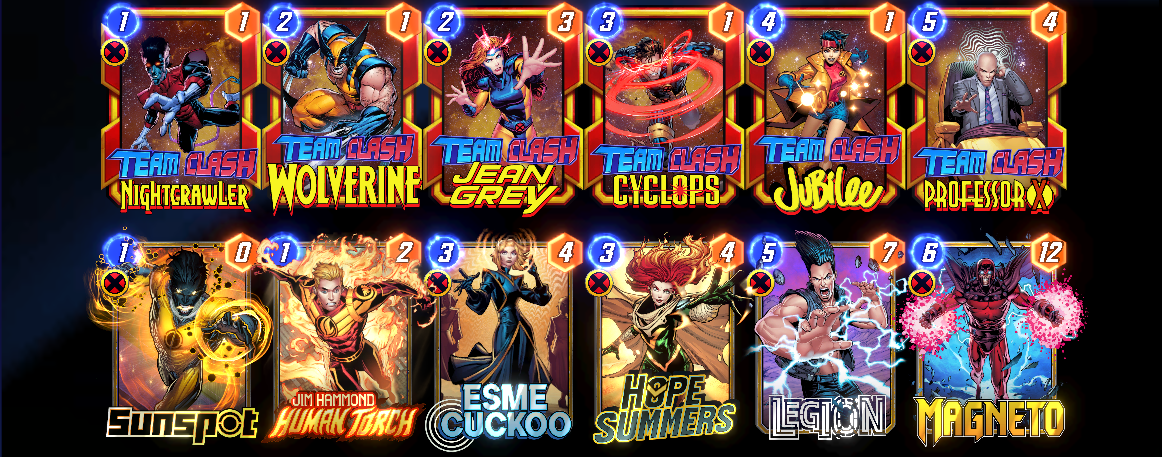 Team Clash Nightcrawler: You can move this once. When this moves, give it +1 Power for each of your X-Men at the new location.