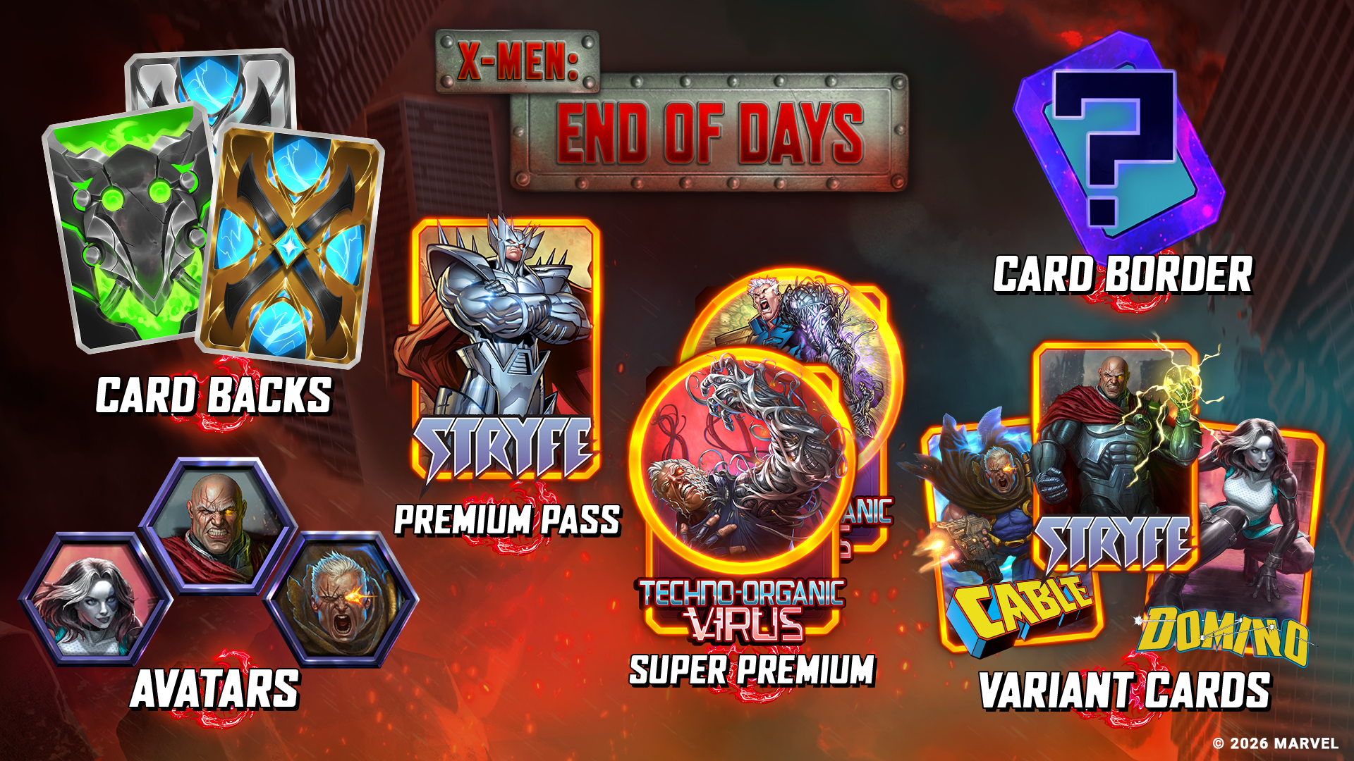 Stryfe is a clone of Nathan Summers, raised by Apocalypse and unimpeded by the Techno-Organic Virus. Purchase the Premium Season Pass and claim this new power. If you purchase the Super Premium Season Pass, you’ll also obtain the new skill card, Techno-Organic Virus along with the new System Studios variant.