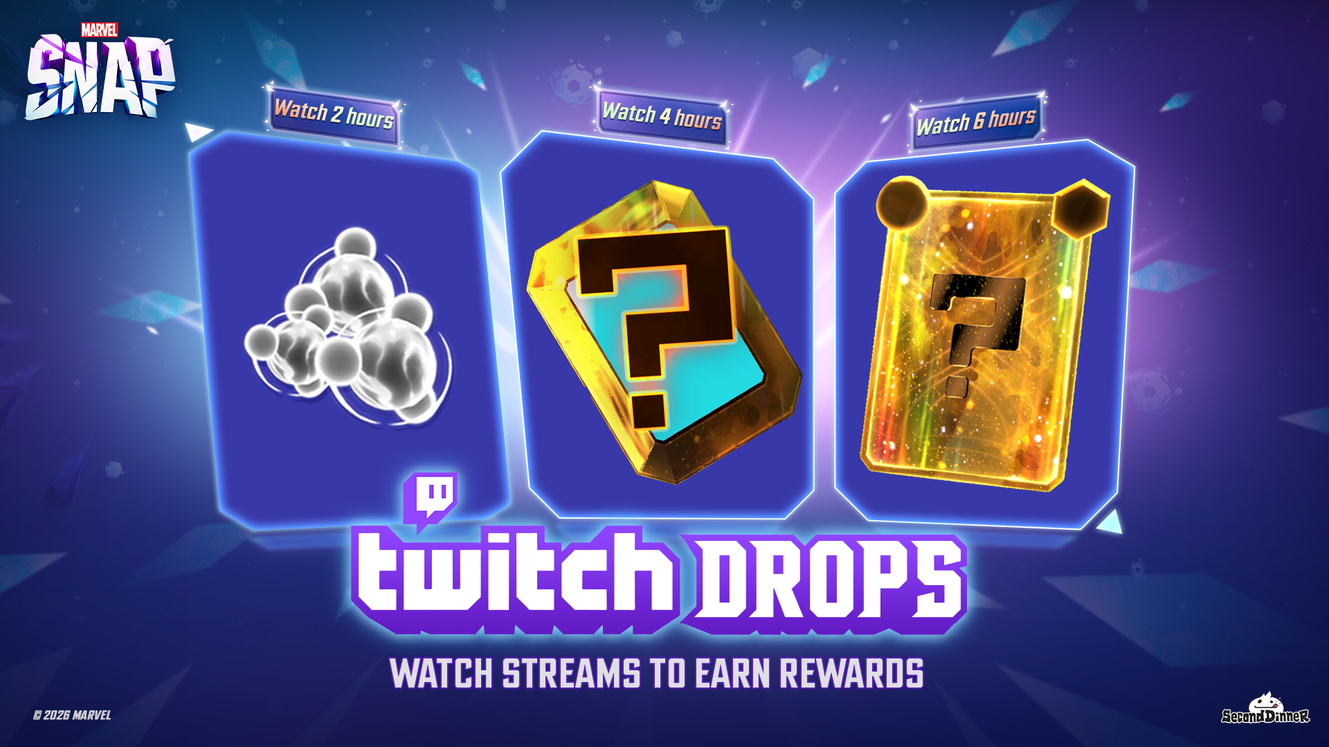 Kick off this season in style by watching your favorite creators to earn great new rewards. Drops are available April 7-12th. If you haven’t linked your account, you can visit https://twitch.marvelsnap.com/ to get set up!